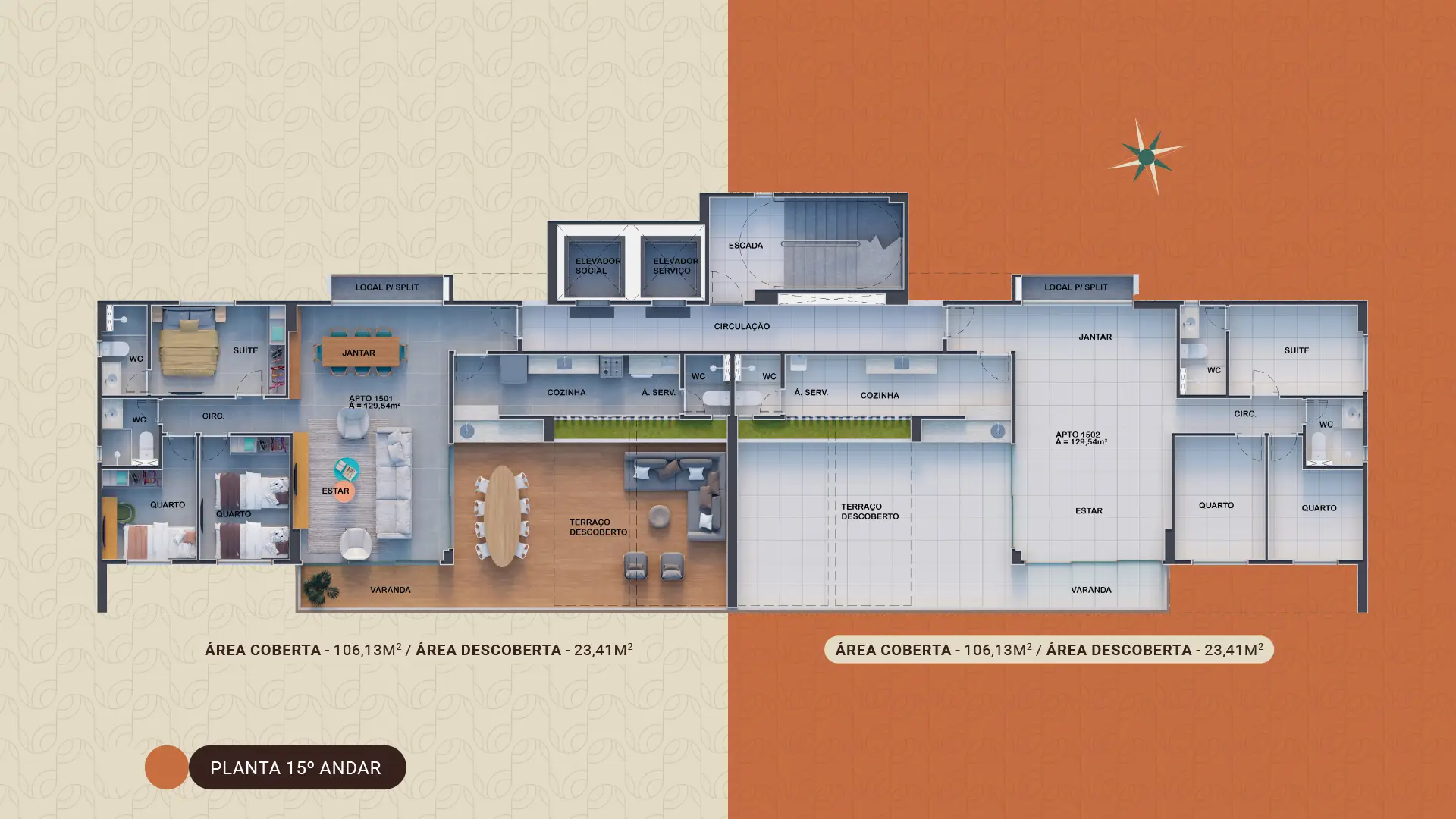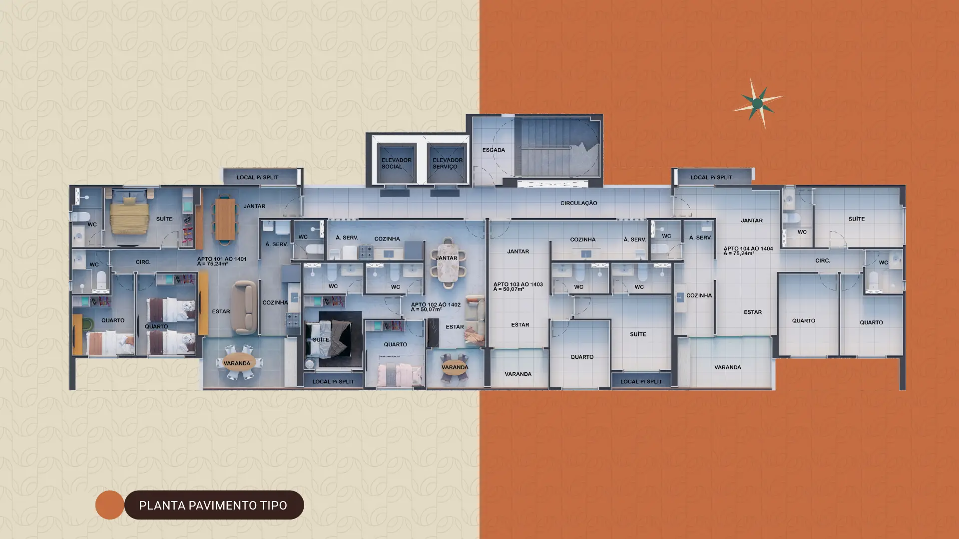 Escolha entre apartamentos de 2 e 3 quartos, com áreas de 50m² a 75m², ou aproveite as exclusivas unidades de 129m². Experimente o equilíbrio ideal entre urbanidade e praticidade.